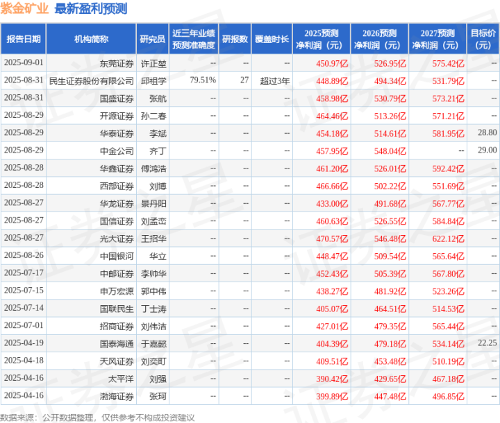 我们预计公司2025-2027年归母净利润分别458.10/504.78/562.93亿元(前值为397.03/445.60/485.73亿元,考虑金价上行上调),对应PE分别为13.39/12.15/10.90倍,维持“买入”评级。