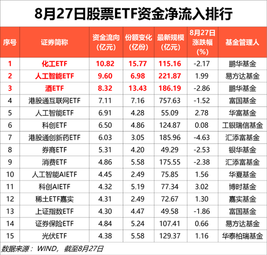8月27日,宽基ETF资金净流出128.16亿元。其中,科创板50ETF资金净流出46.7亿元、创业板ETF净流出44.8亿元。